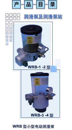 WRB型泵是一種小型柱塞式電動潤滑泵,額定工作壓力為16Mpa,其出油量較小,有直流和交流兩種電壓可供選折。它廣泛用于印刷機(jī)械、塑料機(jī)械、食品加工機(jī)械、工程機(jī)械等各種中小型機(jī)械設(shè)備的集中潤滑。其中WRB2及WRB4型潤滑泵出油口裝有安全閥,WRB1及WRB3型潤滑泵出油口未裝安全閥。